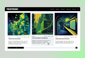Drawing inspiration from TrustedSec's distinctive brand, which echoes retro hacker culture and the aesthetics of 90s tech companies, we seamlessly integrated elements of UX with the site's code. This fusion allows knowledgeable users and hackers to embark on a gamified Easter egg challenge, where they can showcase their skills as potential candidates. This approach directly supports the client's recruitment goals. Similar design attention was given to several other aspects of the experience, such as how the site aimed to showcase the company's expert team consistently and dynamically across the entire website, and the use of generative imagery to further acknowledge the company's founding in technology.